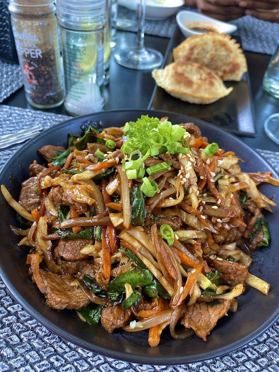 Great food, friendly staff, relaxing atmosphere. The glass noodles are amazing and the portion was quite large (picture is after I already ate a third of it).